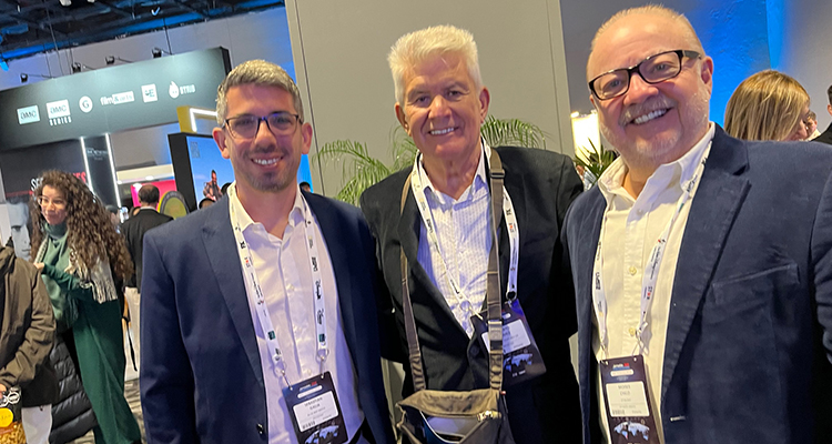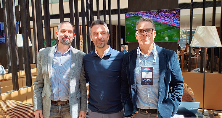 Sebastián Dello Staffolo y Javier Julio de PROXTV, con Leonardo Pinto de Inverleigh